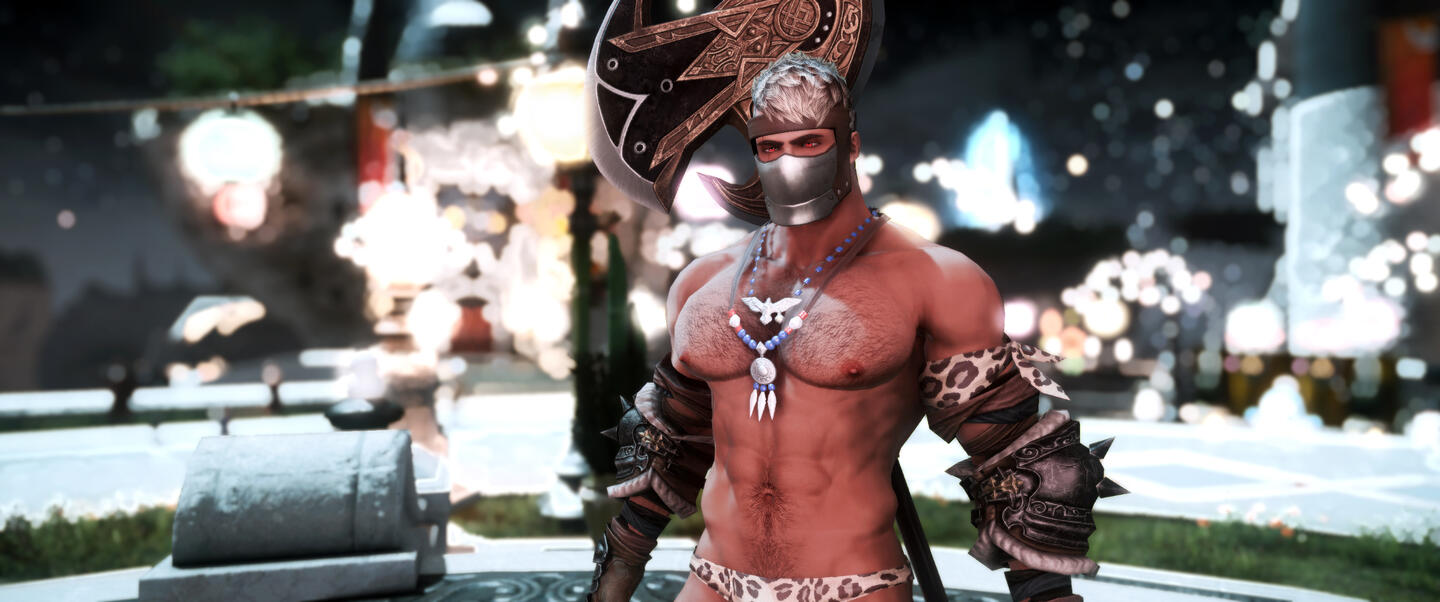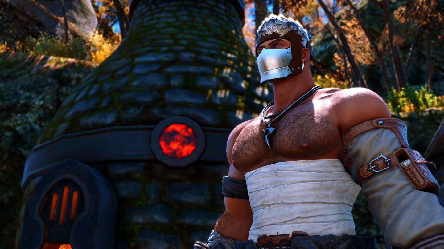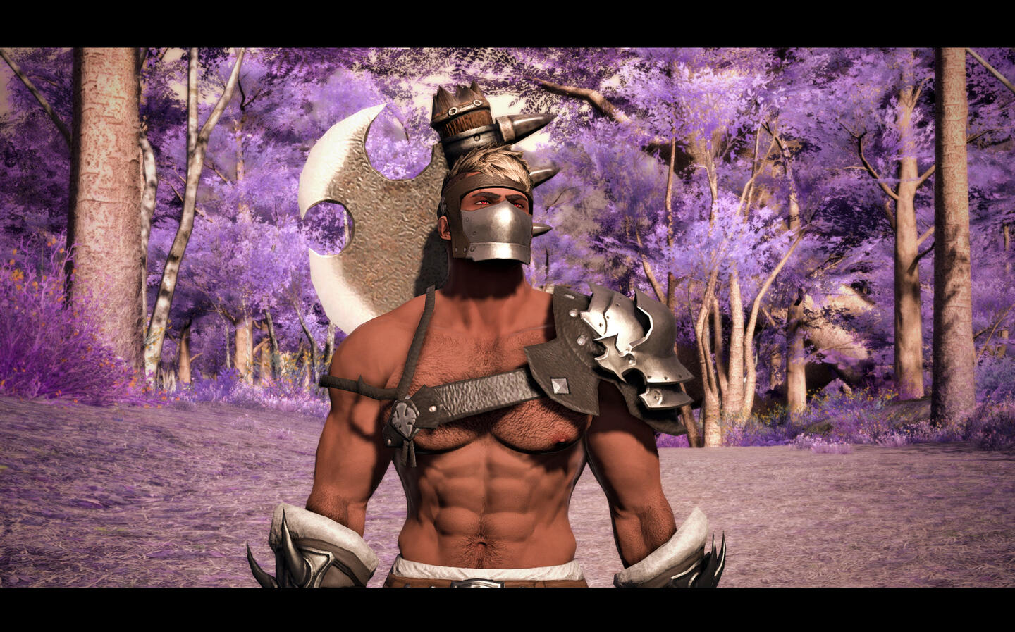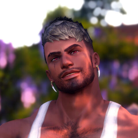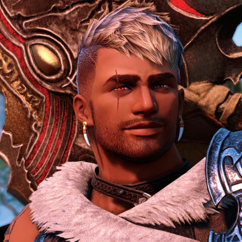 HUNTING MONSTERS.Taking these two passions to the point of obsession, Hunter's physique and combat prowess are his constant work of personal achievement. Nearly every experience is framed through the lens of a challenge to overcome, or a goal to achieve.With a well-groomed beard and a conventionally attractive jawline, Hunter was uncharacteristically 'pretty' for the job. Save for a thin scar running down vertically across his right eye, the huntsman remained remarkably unmarred for someone who spent his days tracking the most ambitious game he could find— indicative of his vanity, and efforts to maintain those roguishly good looks for which he held great pride.Typically garbed in a tribal style of wear, he displays his efforts proudly; straps, loincloths, bonetooth bands, and wrappings comprise the bulk of his wardrobe. Favoring flair and intimidation techniques over most conventional modes of practicality, his dress is fitted to accentuate his musculature.
