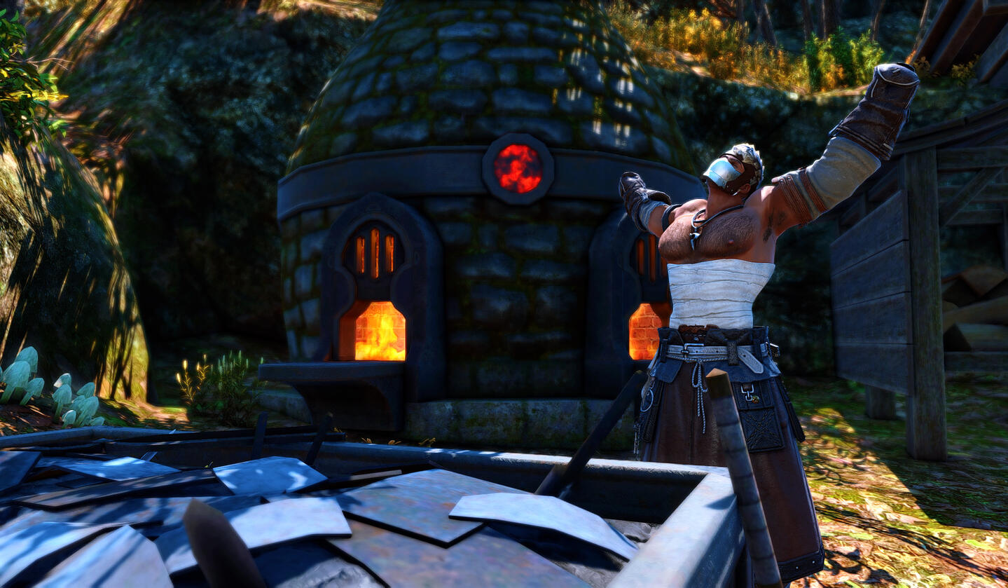 Hunter runs a smithy, using materials left behind when formidable monsters are defeated & carved.
